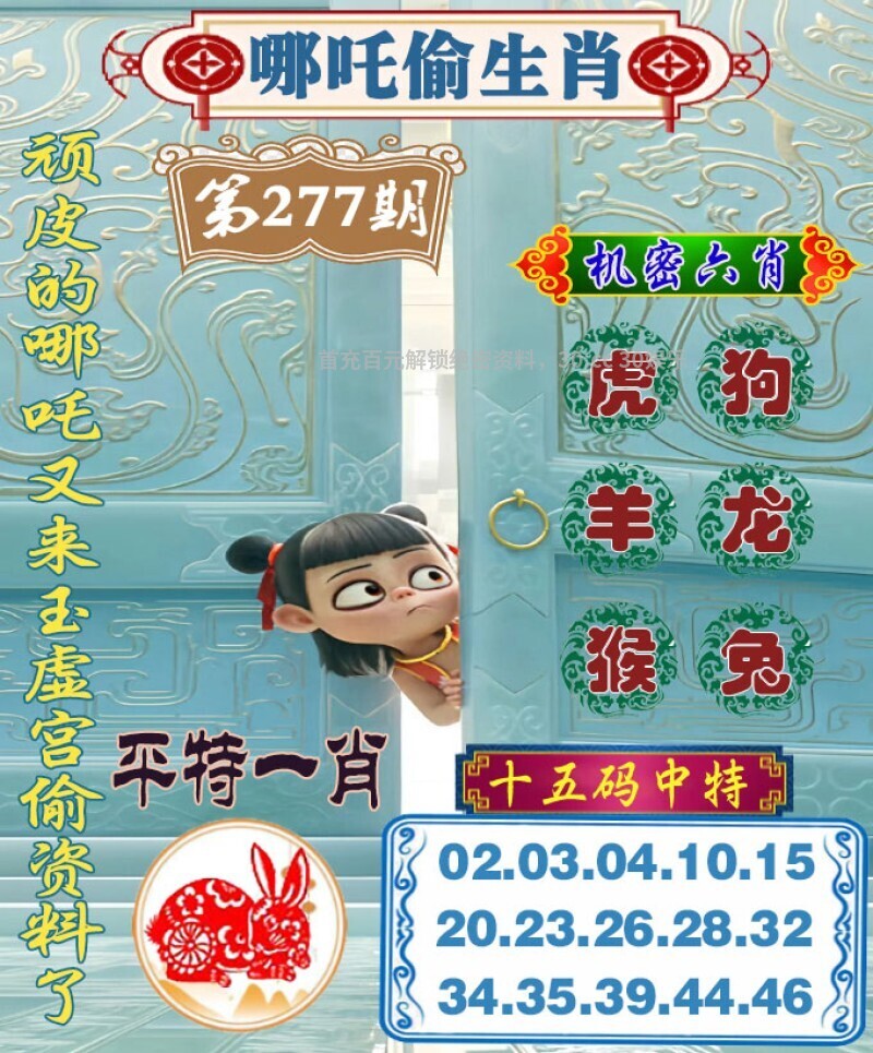 277期【解哪吒偷生肖】 解料:十有八九输在此,今期土金生肖头 机密六肖:虎狗羊龙猴兔 |
